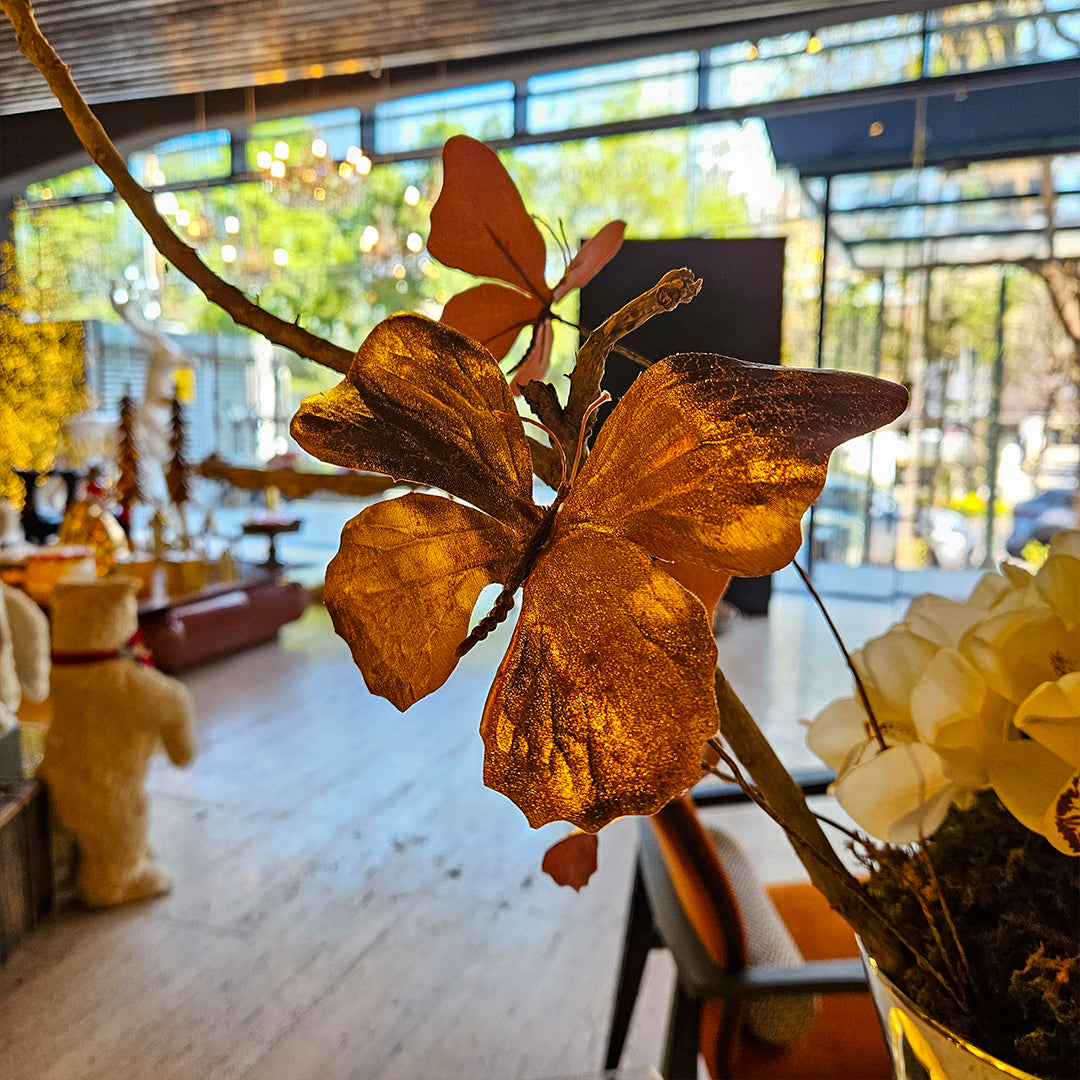 FLORERO DE ORQUÍDEAS Y ROSAS BLANCAS CON MARIPOSAS